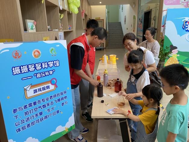 在舞台环节,来自中心的“童梦之声”合唱团、关爱联盟单位邑榕慈善公益基金会以及中心服务参与代表为现场群众上演童歌演唱、科学秀等及知识问答等精彩节目,现场参与和互动的气氛随即被带动。