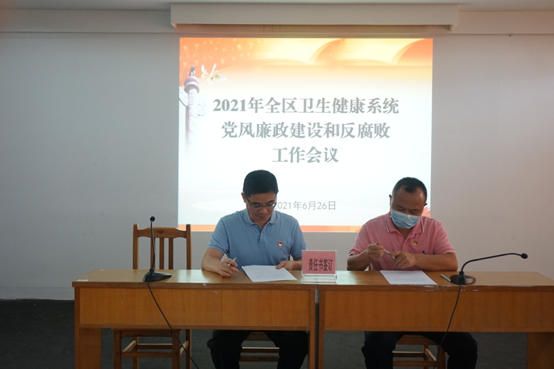 卫生健康局党组召开全区卫生健康系统党风廉政建设和反腐败工作会议,深入学习贯彻落实党的十九大和十九届二中、三中、四中、五中全会精神,总结2020年全区卫生健康系统党风廉政建设和反腐败工作,研究部署2021年各项工作任务。局党组成员钟英达、区纪委监委驻局纪检监察组组长张林青在会上作了讲话。局机关领导班子成员、各股室负责人、全体党员、驻局纪检监察组同志、区属各医疗卫生单位党组织书记、分管纪检工作的领导等近60人参加了会议。会议由张振秀副局长主持。