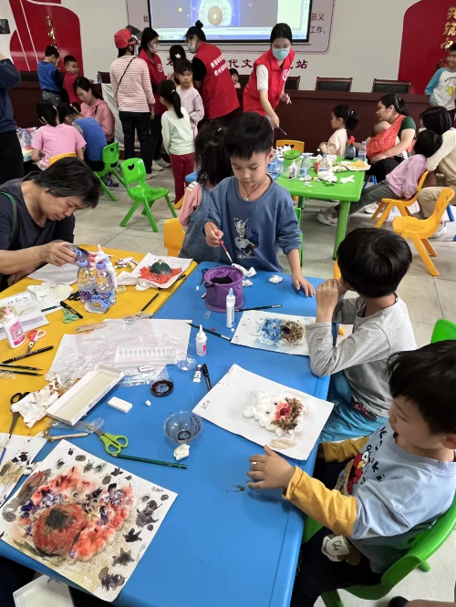 (志愿者导师带领亲子家庭进行艺术创作)