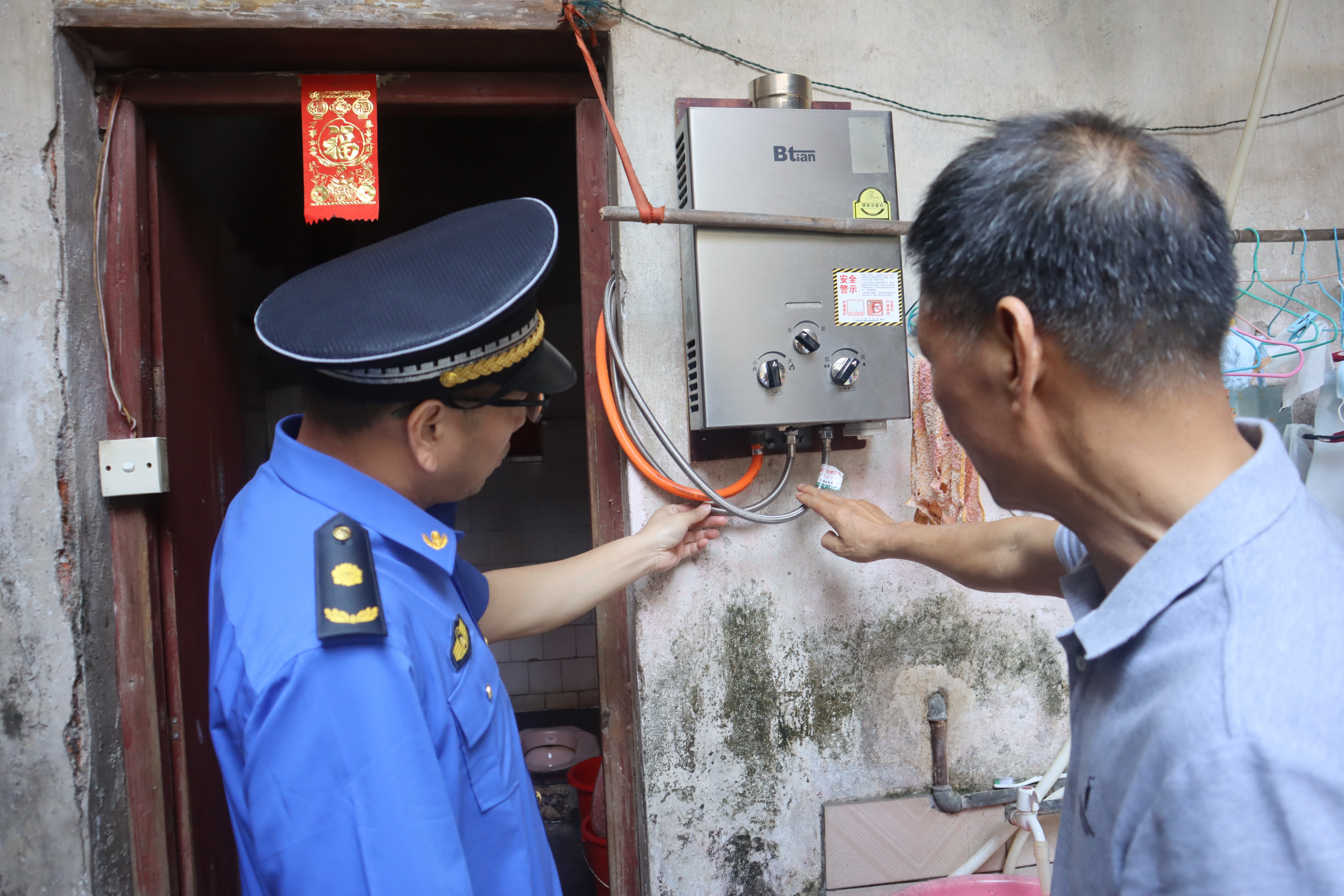 “阿叔,您的热水器是直排式的,而且没有安装排气管。在密封的空间洗澡很危险的,很容易发生安全故事。还有您用手摸一摸,是不是很硬?这么硬代表胶管已经老化,非常危险,要马上更换。”工作人员在检查时向居民详细说明发现的燃气隐患问题并指导整改、登记情况……一系列闭环监管措施,就是为了让居民群众规范安装使用燃气。