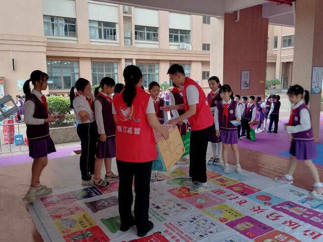 讲座结束后,工作人员组织同学们到户外游戏区参加活动,“垃圾分一分”“分类大转盘”“垃圾分类飞行棋”等丰富多彩的游戏,让同学们沉浸其中。大家拿着印章收集卡,穿梭在各个游戏之间,一边愉快玩耍一边学习垃圾分类知识,通关后还可以兑换心仪的礼品和领取《垃圾分类法律知识50问》,现场宣传氛围热烈浓厚。