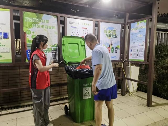 活动期间,由区生活垃圾分类办、区住建局、团区委、属地街道、社区、物业单位联合组成“桶边督导”志愿服务队伍,引导居民正确分类投放垃圾,主动普及垃圾分类知识。与此同时,不少热心居民、亲子家庭也积极参与其中,“阿姨,剩饭剩菜您有单独分出来吗?它们是厨余垃圾,麻烦扔在绿色的厨余垃圾桶里……”小小志愿者以认真的态度耐心解释各种垃圾的分类,赢得了其他居民的支持和赞赏,“垃圾分类使我们的家园更美丽,希望能和大家一起做好垃圾分类。”