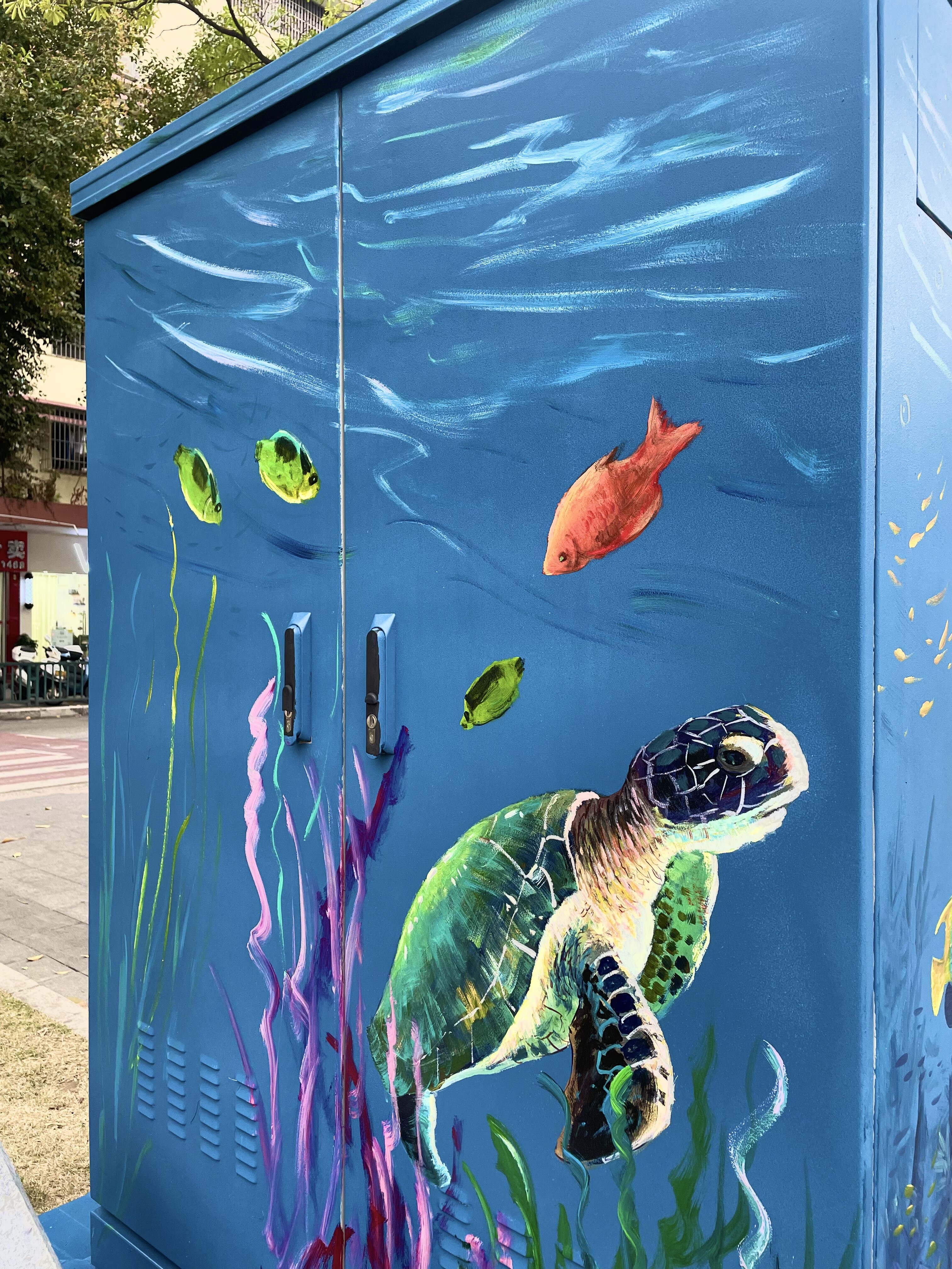 线箱彩绘成“海底世界”,充满浓郁的海洋气息