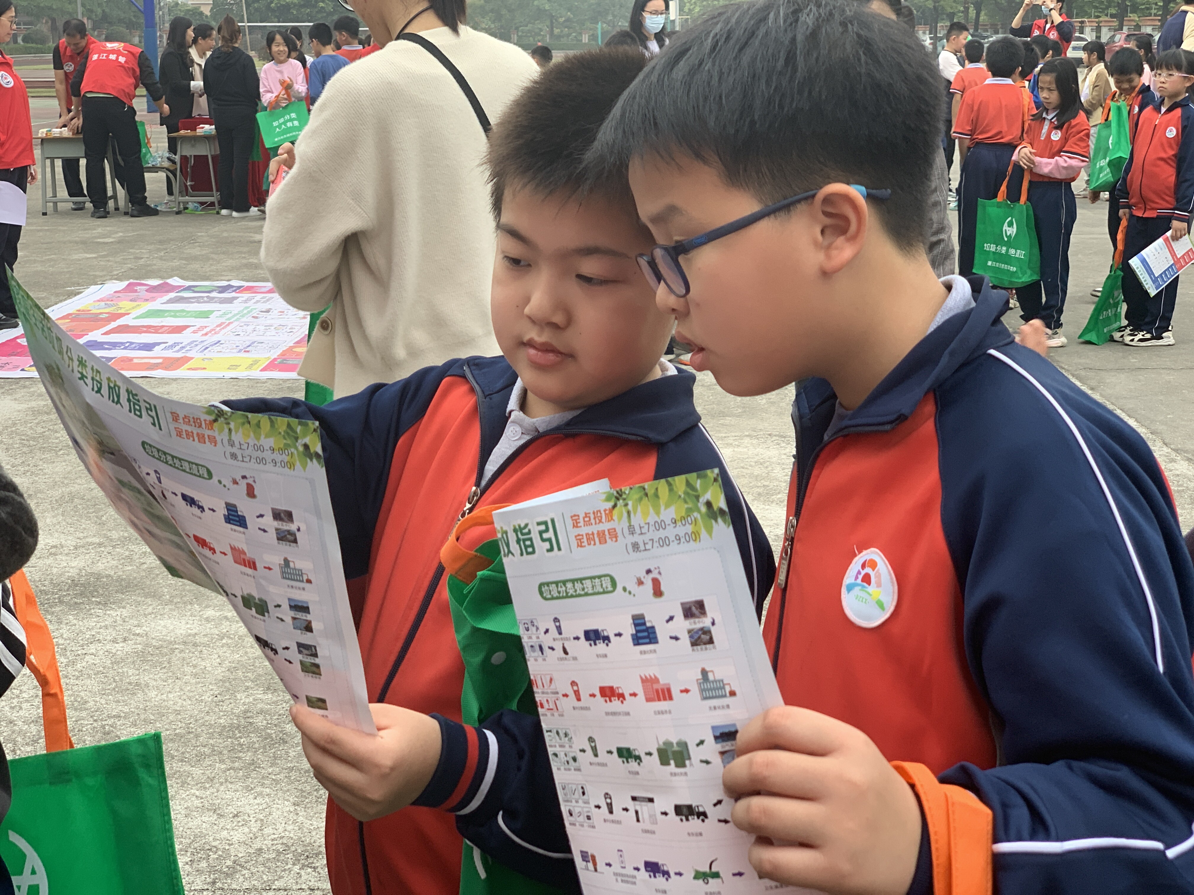 活动伊始,志愿者向同学们派发《城市节约用水宣传册》《家庭生活垃圾分类投放指引》等宣传资料,讲解生活中如何节约水资源和践行垃圾分类,如避免长时间淋浴、搓洗时关掉水龙头、减少剩饭剩菜和一次性餐盒产生等。