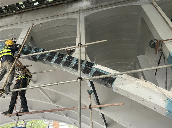 对旧蓬江大桥维修加固(拱肋粘贴碳纤维布)