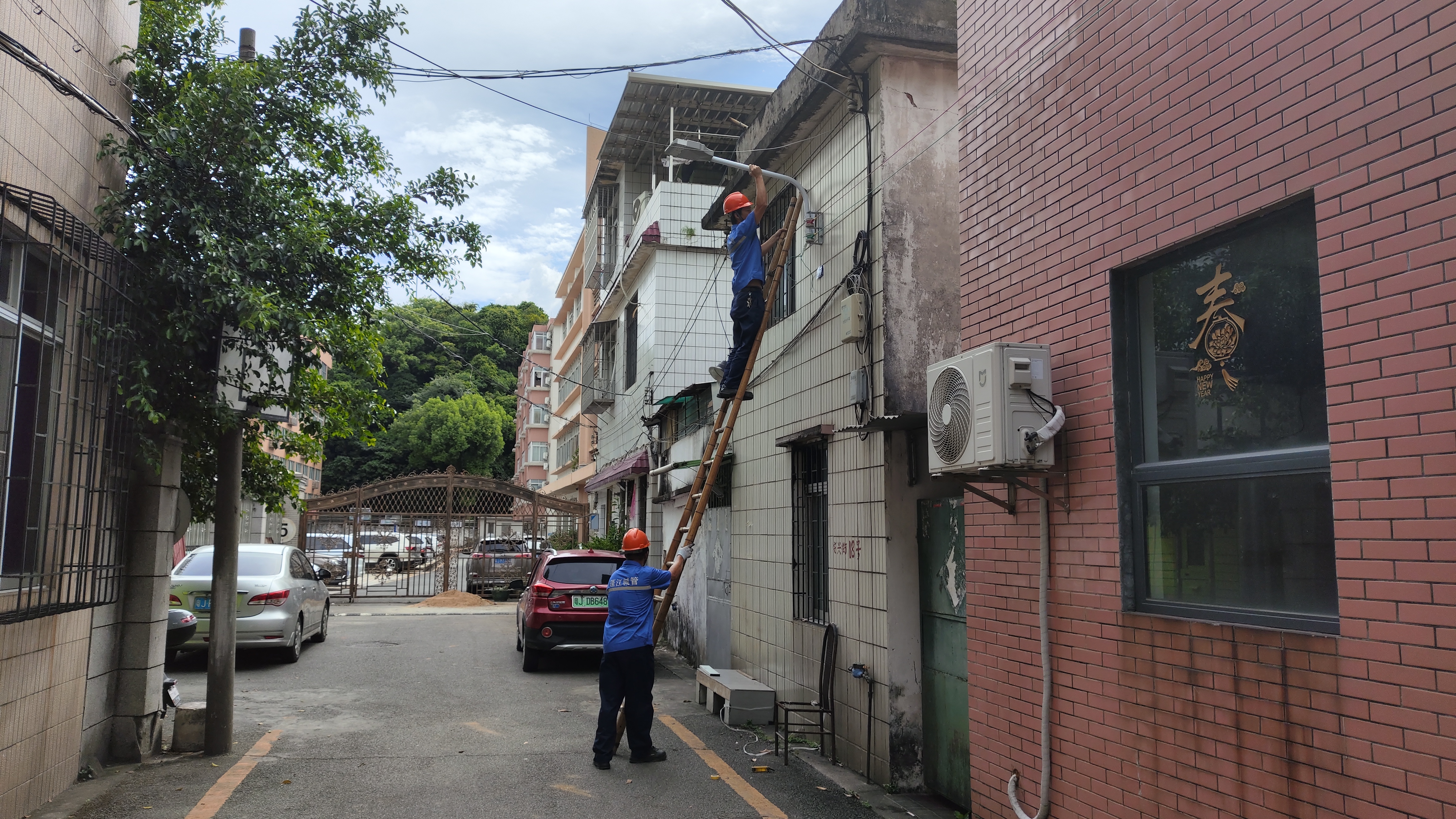 “这里的绿化树木生长影响了路灯线路的正常安装,但社区和居民都想继续保留树木现状,为此,我们调整思路,积极协调多方。经多次实地勘察测量,最终拟定了通过安装特殊的路灯架高码,灵活改变路灯线路,解决原先线路走向困难的问题。”市政工人吴裕想介绍。
