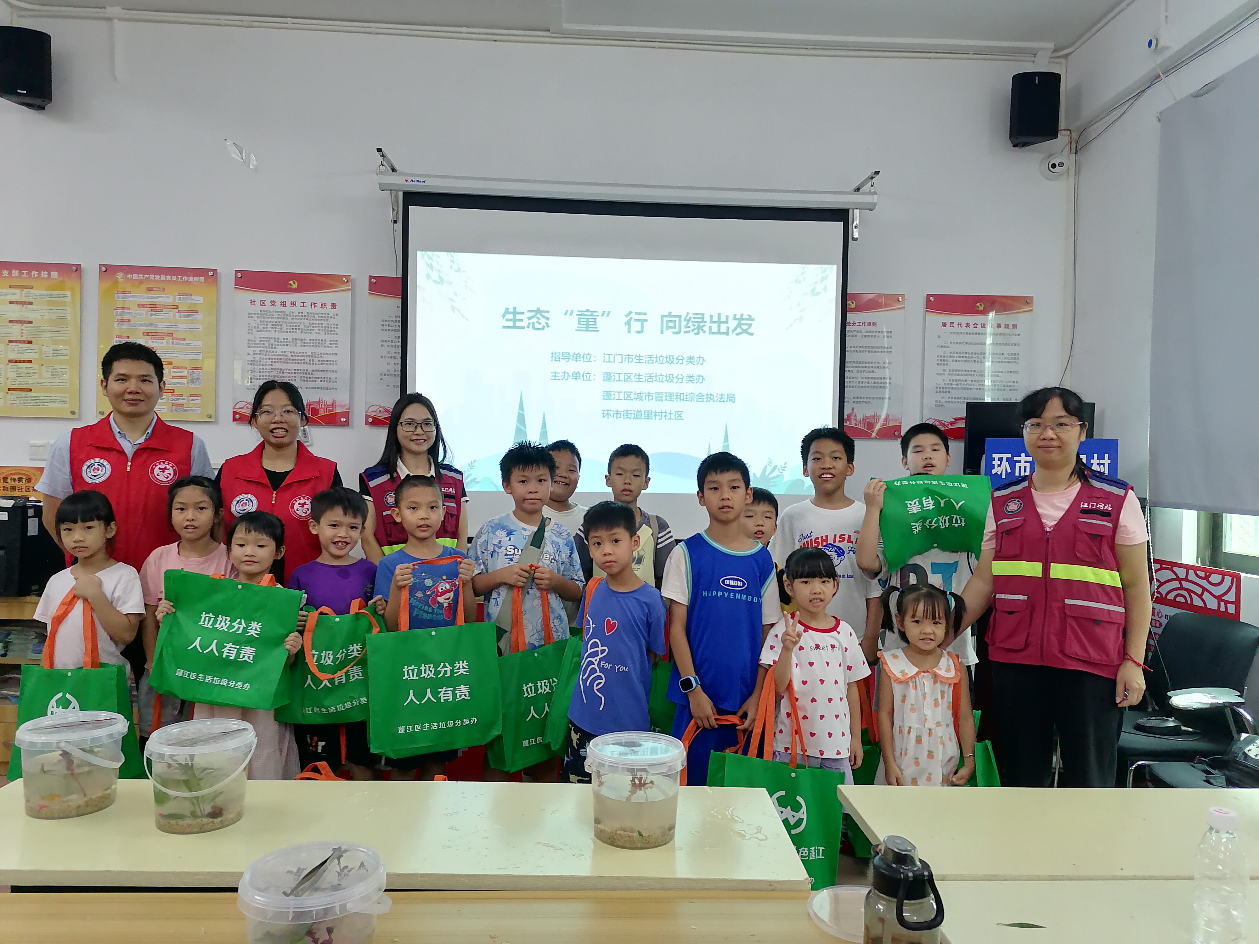 为深入贯彻落实习近平生态文明思想,在江门市生活垃圾分类办的指导下,8月16日,春雨直播 生活垃圾分类办、春雨直播 城市管理和综合执法局走进环市街道里村社区,开展2024年全国生态日宣传活动——“生态‘童’行 向绿出发”主题讲座暨“迷你生态鱼缸”DIY制作,通过科普与手工相结合的宣教方式,丰富社区青少年的暑期文化生活,增强爱护环境、保护家园的环保意识。