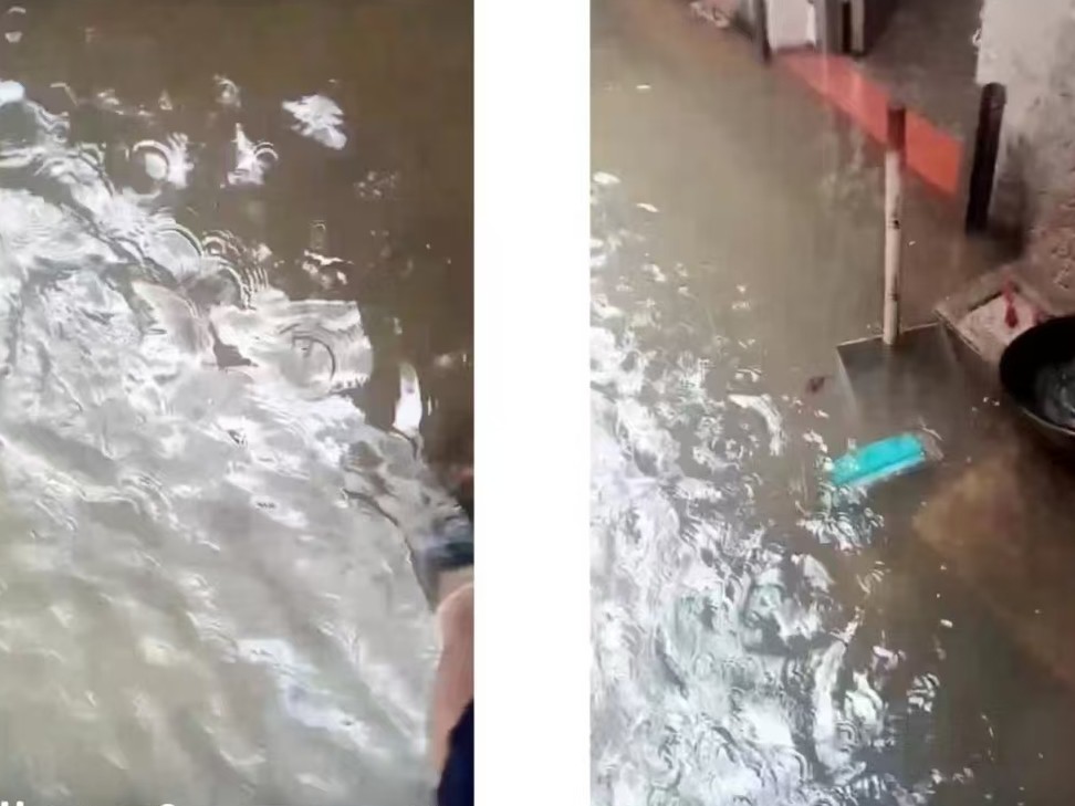 现场了解到,黄大叔居住的房屋是80年代所建,处于该区域的地势低位,而周边房屋均是近年来重新建设,建设时均参照公路水平线抬升了房屋地台,致使其居住房屋所处位置形成锅形集雨最低点,在瞬时大雨时容易形成内涝水浸。
