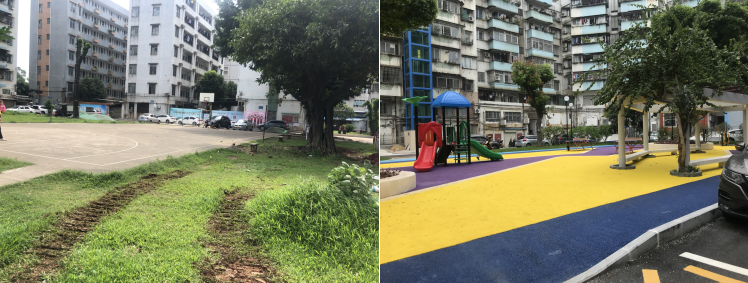升级改造后的丽苑社区中心公园和休闲广场增加活动空间