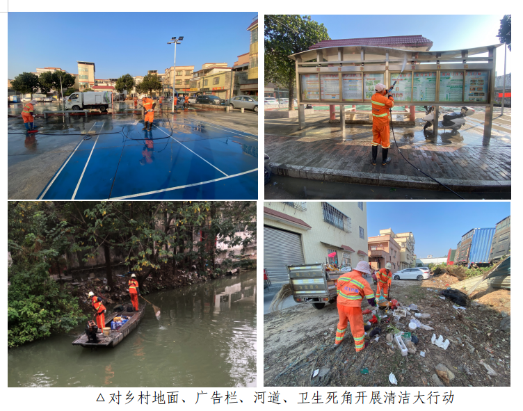 在深入开展“百县千镇万村高质量发展工程”省级典型村培育的过程中,我局除了加强挂点霞村的整治外,还整体谋划、细致排查城乡主次干道、河道周边、公共活动场所等关键区域的卫生“黑点”,与属地镇政府、村委会、服务公司凝聚合力再攻坚,力求实现城乡环境卫生治理全覆盖、无死角。