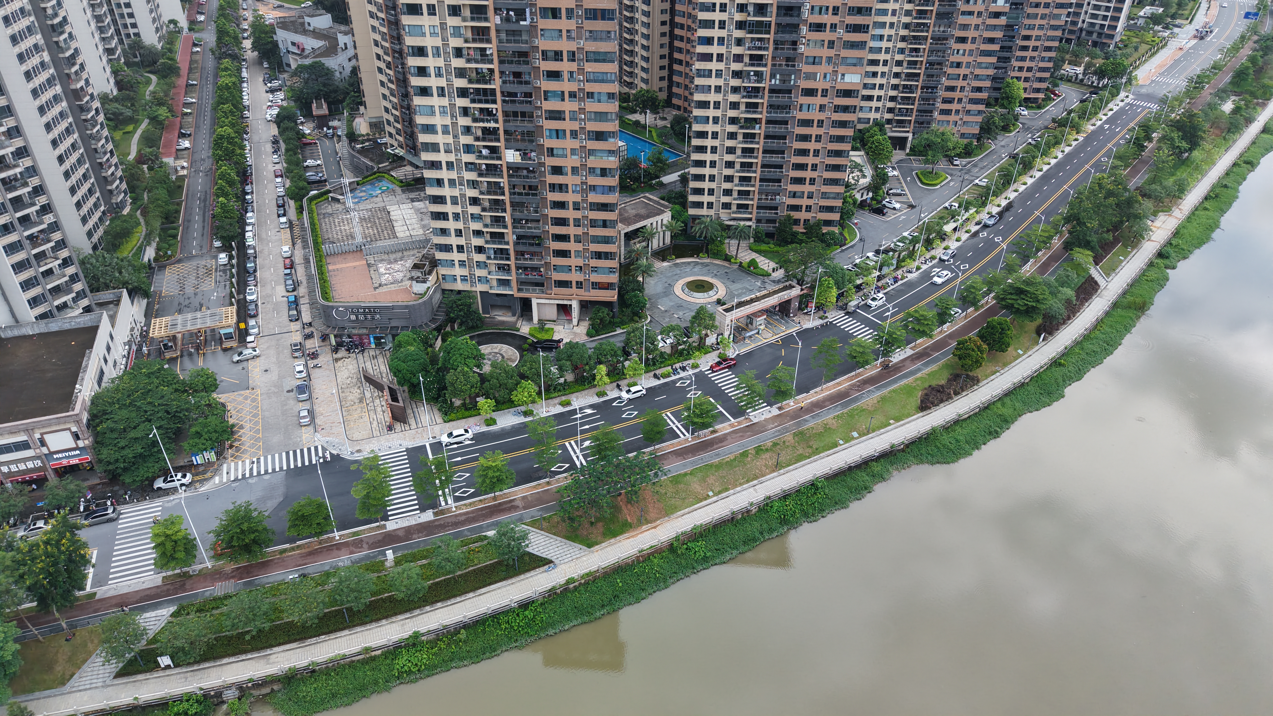 “以前送孩子上学,最怕下雨天。这条路积水能没过脚踝,电动车都不敢骑,只能背着孩子绕远路。现在好了,路宽了、水通了,雨天也能放心出门了!”在月珑湾小区门口,居民陈先生指着崭新平整的桂香路,言语间满是欣喜。