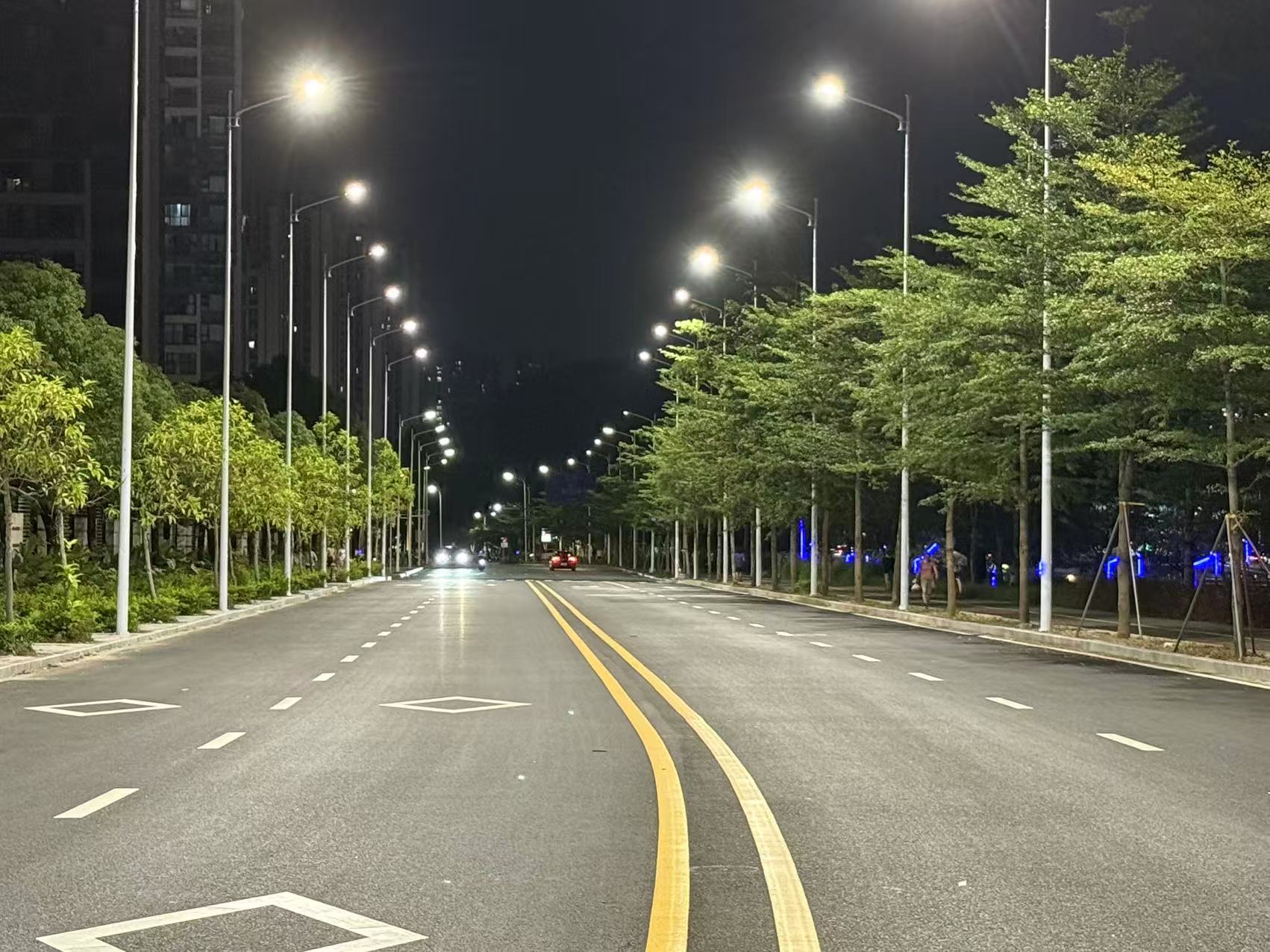 改造后的桂香路焕然一新,路面平坦宽阔,智慧路灯崭新明亮