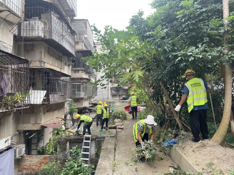 在完成150平方米闲置屋的集中整治后,攻坚一组次日便转向石湾社区直湾石街内另一处约60平方米的闲置屋,这里同样陷入了漫藤覆盖、垃圾堆积的困境。
