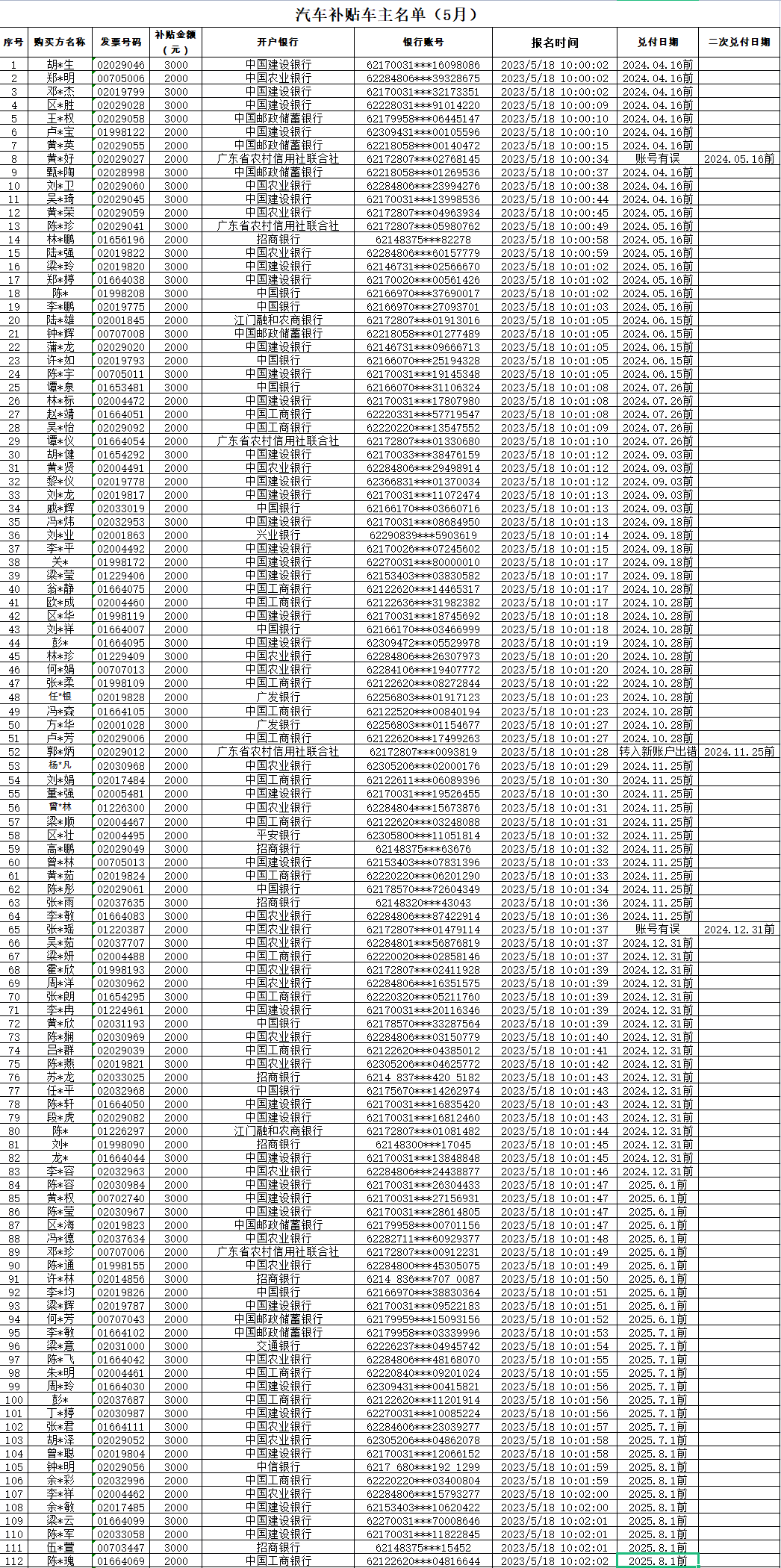 2023乐购蓬江促消费机动车补贴从2024年4月按报名时间顺序开始兑付,现将兑付情况公告如下。由于每次兑付金额有限,未兑付的请耐心等候,谢谢!