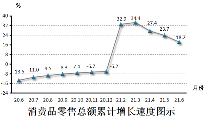 上半年,全区社会消费品零售总额130.13亿元,增长18.2%。全区批发业商品销售额增长20.5%;零售业商品销售额增长24.4%;住宿业营业额增长28.5%;餐饮业营业额增长46.4%。