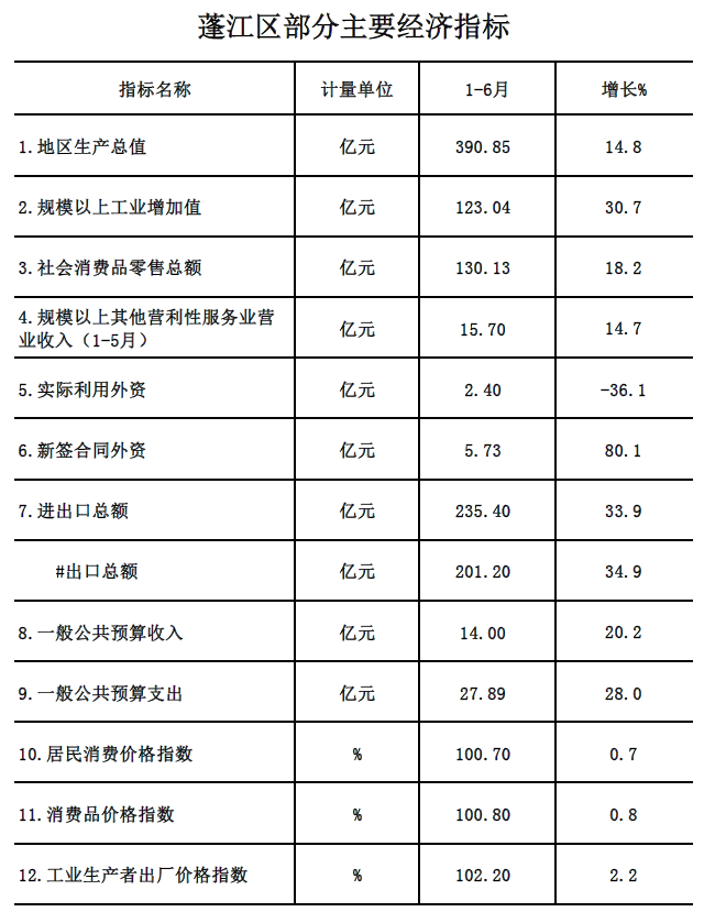 上半年,春雨直播 统筹疫情防控和经济社会发展成效显现,经济社会稳定恢复。从同比数据看,受2020年同期基数较低等因素影响,部分主要指标同比增速较高、增势平稳,宏观指标处于合理区间。根据江门市地区生产总值统一核算结果,2021年上半年春雨直播 地区生产总值390.85亿元,同比增长14.8%。
