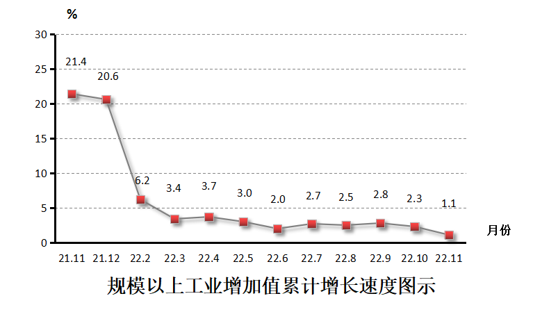 1-11月,全区规模以上工业增加值231.66亿元,同比增长1.1%。分行业看,制造业增加值增长0.4%;电力、热力、燃气及水生产和供应业增长3.9%;采矿业增长14.8%。分经济类型看,股份制企业增加值增长1.7%;外商及港澳台商投资企业增长0.4%。分企业规模看,大型企业工业增加值增长6.8%,中型企业增加值下降13.5%,小型企业下降8%。全区工业用电量下降6.9%。