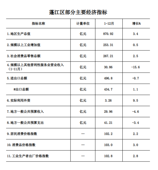 2022年,全区地方一般公共预算收入29.96亿元,下降4.6%;地方一般公共预算支出41.21亿元,下降3.4%。