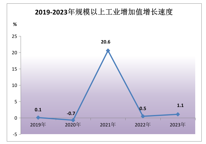 全年工业增加值比上年增长2.6%。其中,规模以上工业增加值增长1.1%。分注册类型看,国有及国有控股企业增长9.9%,外商及港澳台投资企业下降5.6%,股份制企业增长3.9%;分轻重工业看,轻工业下降2.3%,重工业增长2.7%;分企业规模看,大型企业增长1.6%,中型企业下降4.4%,小型企业增长3.9%,微型企业下降17.7%。