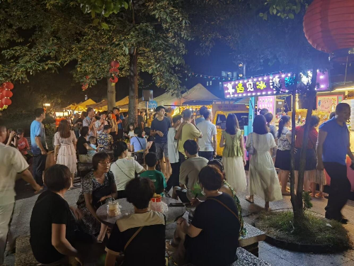 “这个钵钵鸡很好吃!”“这是非遗糖画,好生动!”“没想到南村公园晚上那么美。”集市现场,奶茶、甜品、炸串、驻唱歌……一些城里的玩意,如今呈现在了村民“家门口”。据悉,创意集市分观光打卡区、美食区、游戏区三个活动区域,首日就吸引超过5000人次到场打卡。