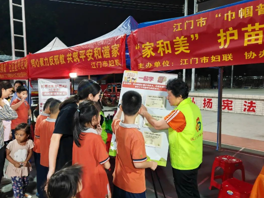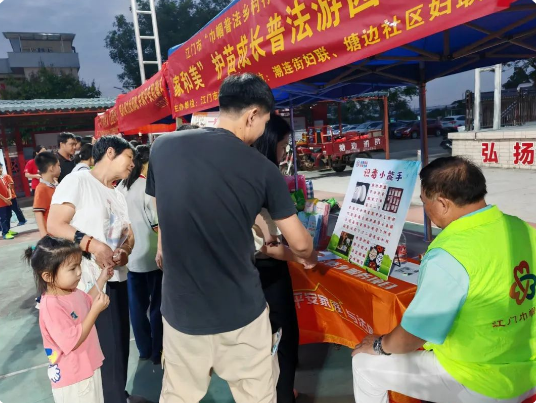 随着六一儿童节的临近,塘边社区文体广场上空洋溢着欢乐与期待的气氛。潮连街妇联于5月29日晚上在此特别举办了一场别开生面的“关爱童行 护苗成长”普法游园活动,旨在通过寓教于乐的方式,让广大妇女儿童和家庭深入了解未成年人保护的相关知识。