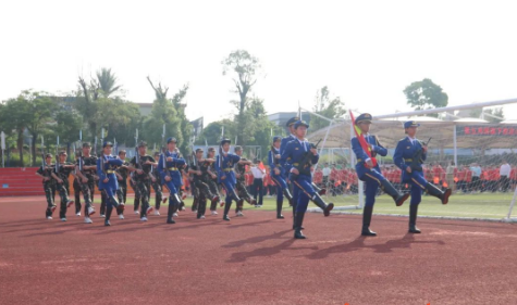 英姿勃发的护旗手们,迈着坚定的步伐,护送鲜艳的五星红旗步入会场,全场肃穆。五星红旗映着朝阳,在激昂雄壮的国歌声中,升旗手将国旗抛向空中,全体人员庄严肃立,目光紧紧追随国旗,向国旗、向伟大的祖国致以最崇高的敬意和最美好的祝福,共同祝愿伟大的祖国更加繁荣昌盛,国泰民安。