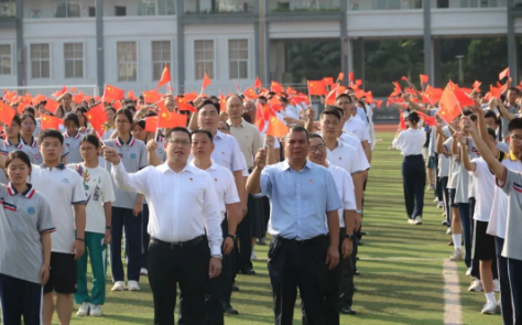 七十五载风雨兼程,七十五载辉煌岁月。为庆祝中华人民共和国成立75周年,深入学习贯彻党的二十大和二十届三中全会精神,弘扬伟大的爱国主义精神,9月30日上午,潮连街道党政领导班子、各办(中心)负责人、各社区书记身着正装齐聚潮连中心学校体育场,会同中心学校全体师生举行隆重而庄严的升国旗仪式,共同见证五星红旗冉冉升起的庄严时刻,向伟大祖国献上美好祝福。
