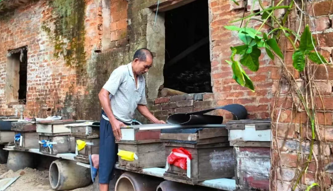 养蜂户肖作裕积极配合迁移,并当起“周郡蜂蜜”品牌的“宣传员”。